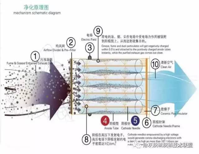 采用水噴淋或用適當(dāng)?shù)姆椒ㄔ诔龎m極表面形成一層水膜,使沉積在除塵器上的粉塵和水一起流到除塵器的下部而排出,濕式電除塵器二次揚(yáng)塵很少,除塵效率高,無需振打裝置,但是極板清灰排出水會(huì)造成二次污染。